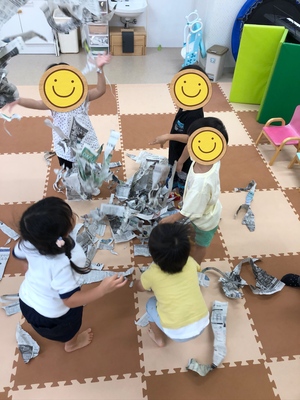 久しぶりに新聞遊びを楽しみました。