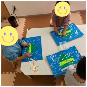 ツリーには沢山のシールを貼ってピカピカにしました!