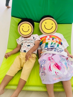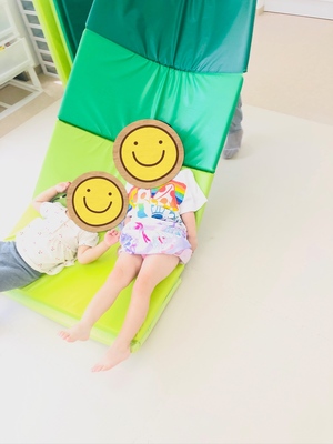 午前中のクラスのお友だちとマットあそびを