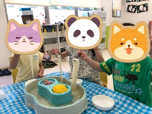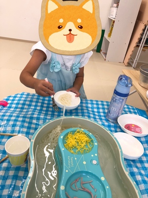 いつもはおやつを食べる午後クラスですが、この日はみんなでめそうめんです。