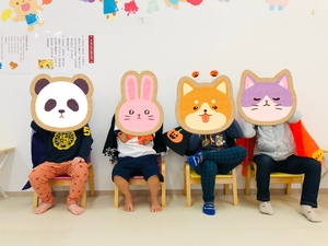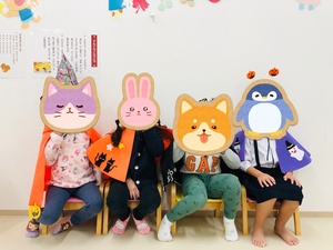 みんなで仮装して、部屋に隠されたお菓子を探すゲームをしました☺︎